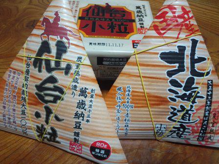 先日お伺いしたお客様から納豆を一箱いただきました。手に持つと納豆の粒々とやわらかさが伝わってきて心地がいい。包みには「仙台平野の豊かな風土で育った厳選された大豆のみを使用し炭室で熟成した自慢の納豆です」と書かれています。あけると経木に包まれた納豆がでてきます。じっくり熟成されたのがわかるほど粒がきれい。創業87年になるといいます。大事なものを守り続けている味です。