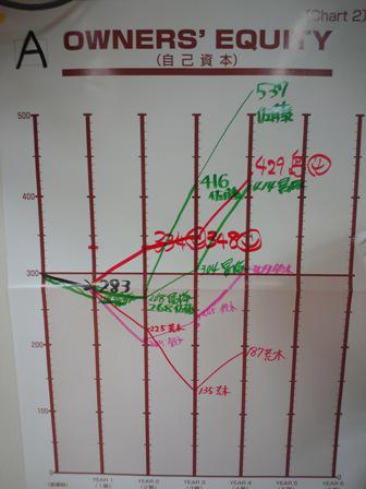 先週の土曜日、第18回まみがさきMGが開催されました。5人の2卓で行われました。毎回何人かの初参加者がいるのですが、今回も3名の初めて参加の人たちが。社長に言われてやってきたという人たち。何をするのかもわからないままの参加。ところが、結果はその初参加者がグラフを突き抜けるトップに。時々こういう偉業を成す新人が現れます。私はというと相変わらず自己資本を減らしています。