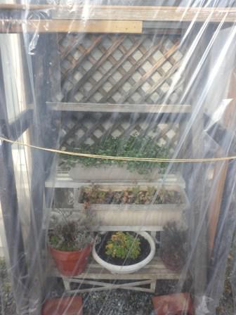 昨日の日曜日ビニールハウスを作りました。夏の終わりにプランターに植えたコリアンダーが元気に育っていて、このまま霜で終わらせるにはもったいないと思い作ったもの。ビニールは数年前に買っていたものが、ただそれらを固定する木材がなく、まわりからかき集めつぎはぎしながらもなかなかいい感じに出来上がりました。蒸れ過ぎないように側面に穴をあけたのはNHK野菜の時間で学んだこと。