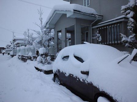 今朝、外を見るとしっかり雪が積もっています。6:30に外に出て雪かきを開始。自動車2台のうち1台が横に駐車するために雪かきをしなければならない面積がやや大きいのが難点。車の雪も30cmのものさしがスッポリ埋まるほどの本格的なもの。7:00にようやく目途がついて終了。シーズンはじめは手際がよくなく30分ほどかかりました。会社についてみるとやはりこちらも30分の雪かきが必要でした。