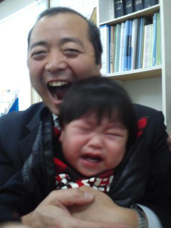本日、有給休暇をとっている社員が忘れ物をしたと子供を連れてやってきました。子供は待ちうけていたオジサンたちに囲まれて大泣き。敏感に反応するのでこちらも調子に乗ってホッペを触ったり抱っこしたり。おまけに泣き顔を写真に撮ったりと、子供にとってはたまったものではない。泣き声は益々エスカレートし消防自動車のサイレンのように響き渡っていました。丈夫に育っていることの証でしょう。