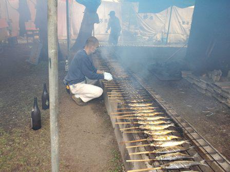 先日の連休にやってきた友人と一緒に行った最上公園。桜がまだ咲いているというウワサを聞いたので。行ってみると桜はほぼ散りきった様子でしたが、広場ではあの有名なかど焼きをやっていました。奥ではブロックにクシを並べて百本ほどのかどが煙を上げて焼かれています。さっそくみんな一本ずつ購入。会場に敷かれたシートの上に4人で車座にすわり、最上の春の味覚を堪能しました。