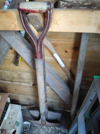 昨日の日曜日は温風ヒーターの片付けや畑の支柱立てなどたまっていた作業を消化。物置の片付けも。スコップが下に置かれ立てかけられているのが如何にも不精っぽい。手元の材料で何とかならないものかと思案し、電動丸ノコで木材を切りドリルでネジ穴をあけ物置の横木に取り付けると、見事なスコップホルダーに。2本かけることが出来るのは重宝。壊れたフェンスの修理はまた次回にすることに。