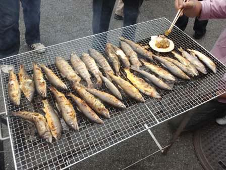 先日、日新火災ビル1Fの駐車場にて芋煮会が行われました。メニューが飛び切り豪華なのが特徴。サザエ、ホタテに始まりエビ、カニ、アサリを網焼きで。天然鮎やイワナの塩焼きは他ではなかなか味わえません。お肉も霜降りの逸品。調理をしてくれる女性陣からはこんな肉家では食べられないと歓声。私は前に出された一杯の芋煮を食べながらひたすら日本酒を飲んでいたようです。