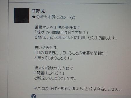 昨日届いたfacebookの記事に興味深い内容がありました。営業マンや工場の責任者に「現状での問題点は何ですか?」と聞くと、彼らのほとんどは〔思い込み〕で話すと。思い込みとは「目の前で起こっていることが重要な問題だ」と思ってしまうことだと。彼はマトリックス会計を広めようと日本各地を飛び回っています。明日はMGで一緒に対戦します。どんな展開になるのか楽しみです。