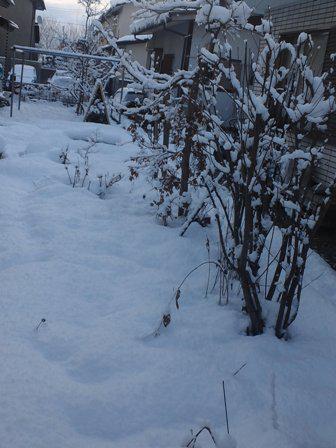 写真は雪囲い前に雪が降ってしまった我家の庭。