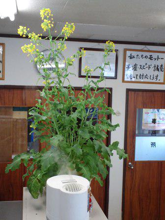 頂いた「大福かぶ」が全開しました。脇から伸びてきた茎の先もしっかり黄色い花を咲かせています。よく見ると1〜2本の茎が途中から折れて下を向いて花が咲いています。水分が足りなくなかったのかもしれません。この時期は普段以上に水の補給が必要なよう。それにしてもみごとに開花してくれたものです。その恩恵なのでしょうか、昨晩お伺いしたお客様では一発大物保険にご契約いただきました。