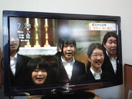 写真は今朝のニュースで紹介された被災した青森県の女子高生がバチカンでの合唱に参加している様子。
