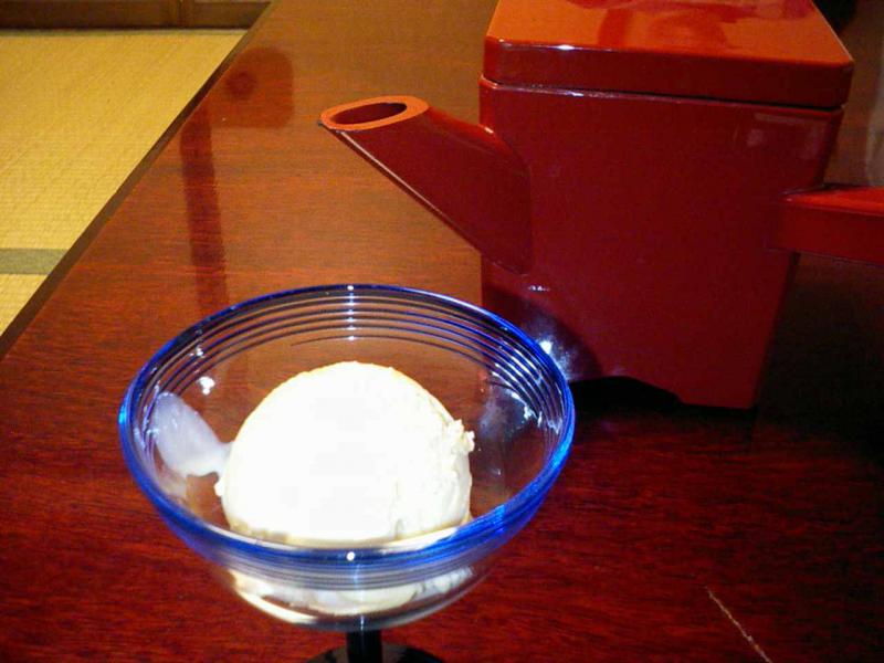 昨日お伺いしたお客様は割烹料理店なのですが昼は蕎麦を出しています。蕎麦を食べた後、そばアイスクリームをサービスしてくれました。昨年11月23日のお昼にソムリエの田崎真也さんが奥さんと突然入って来たのだそうです。その日の夜のお客様用に手引きのそば粉で打った蕎麦を準備していたため、それらを出したところ大変驚かれ、その日の夜と翌日のお昼と続けざまに来店されたそうです。記念写真には田崎さんを真ん中にしご主人と緊張しきった表情のおかみさんが写っていました。