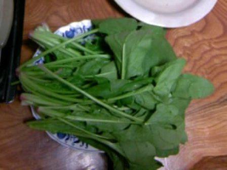 昨日お伺いしたお客様は野菜作りをされています。今はほうれん草の最盛期とのこと。ムクダイという栽培方法で作ったものでヨークベニマルに出荷しているそうです。ムクダイというのは微生物を使った農法らしく、なんでも植物内の硝酸を少なくするための農法の一つとか。3袋ほどいただいてきて早速夕食にほうれん草シャブシャブでいただきました。シャキシャキ感があり、元気な野菜という感じがしました。
