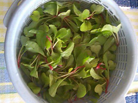 3週間ほど前、二十日大根の種をプランターに植えたのでした。20日くらいで食べられるようになると袋の裏に記載がありました。しかしながら芽が出ただけで根がふくらむ様子がありません。密集しすぎているからかと適当に間引きしました。間引いたものを洗って根を切ってオジヤに入れて食べました。確かに20日で食べられたわけです。かすかにカブの味がしたような気がしました。