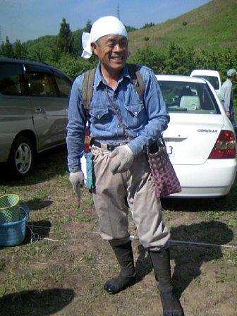 昨日の日曜日は日新火災代理店会のレクレーションで小滝のワラビ園にワラビ採りに行きました。35名ほど集まったでしょうか。中には大変な名人もいて、いでたちがなにやら本格的。2時間ほどバラバラになってワラビを取って集まってきたのですが、名人は背負ったリックにいっぱいのワラビを採っていました。自宅用ワラビは既に十分確保しているらしく、採ったワラビをみんなに配っていました。