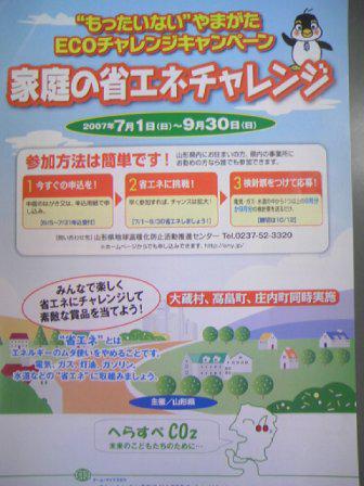 昨日お伺いしたお客様は環境NPOの事務局を担当しておられます。「“もったいない”やまがた」家庭の省エネチャレンジキャンペーン実施中とのこと。ご家庭の電気、水道、ガスの使用を減らす取り組みをしませんかという活動。参加者には抽選で山形牛や蔵王温泉ペア宿泊券、あゆ茶屋ご優待券など県内協賛企業からの商品がいろいろ。詳しくは下記までお問い合わせください。