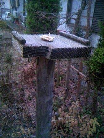 我が家の庭には鳥の餌台があります。冬場ごはんを乗せておくとスズメが集まってきて食べていきます。先日買った牛すじ肉にはやたらと脂がついていて、野鳥にでもやろうと取っておきました。それらを小分けにし餌台に乗せているといつの間にかきれいになくなっています。どんな鳥が食べていったのかと思っていたところ、現れました。カラスが二匹隣家の屋根から餌台の上の脂身をねらっていました。