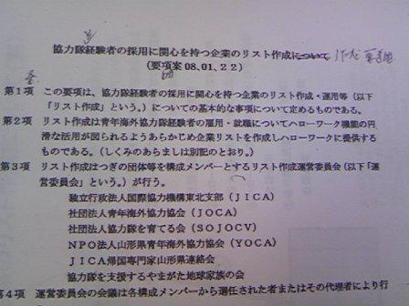 昨日は青年海外協力隊関連6団体が集まり「協力隊等経験者の採用に関心を持つ企業リスト作成」のための運営委員会が立ち上げられました。途上国での活動後に帰国し地元就職しようと考える人たちのサポートになるようなものをと山形労働局の担当者と相談しながら進めてきました。青年海外協力隊支援ということを切り口に「選択できる地域社会」を作っていこうという運動であるととらえています。
