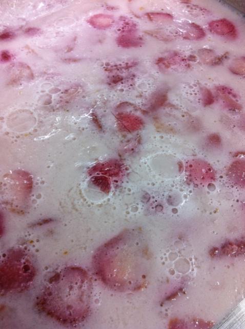 やまべ牛乳と山辺産夏秋いちご「サマーティアラ」の寒天♪