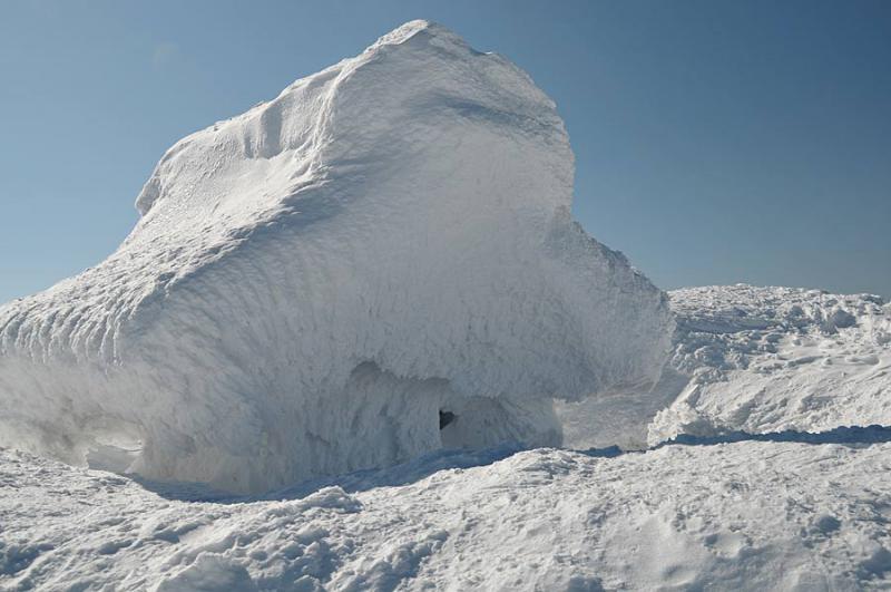 熊野岳山頂にある神社が雪をスッポリ被ってます。