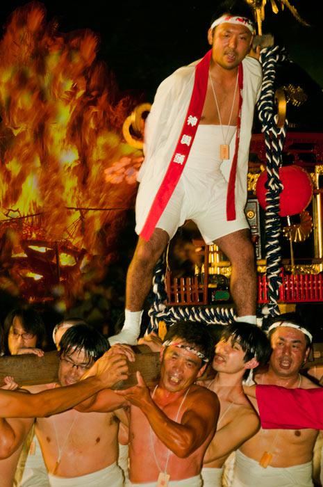 山頂の愛宕神社から下りてきた神輿がかがり火の周りをまわります。