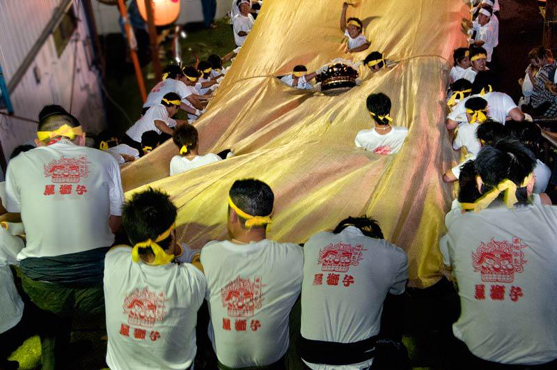 夜の7時過ぎに始まった暴れ獅子と若者獅子(暴れ獅子)の競演は夜の10時近くになって終わりが近くなりました。