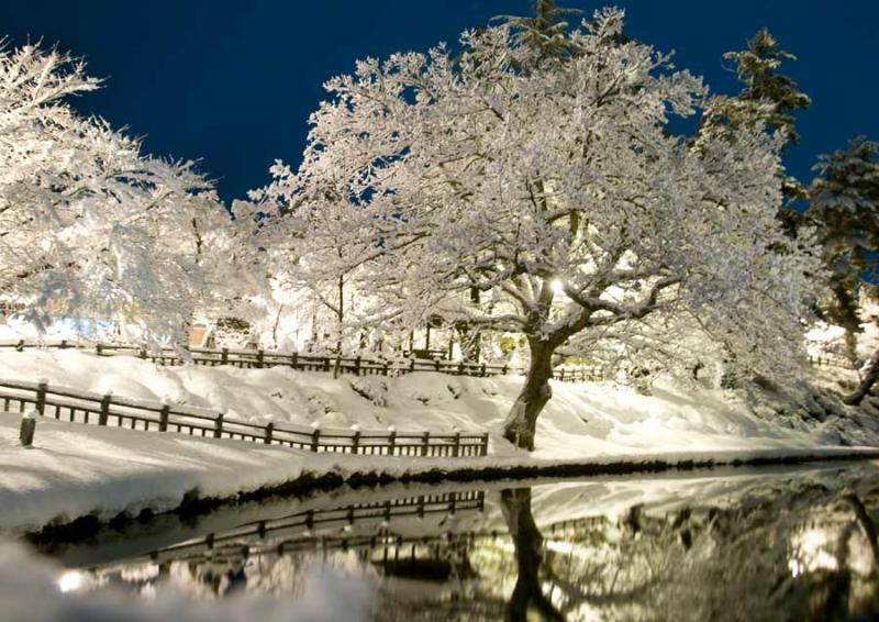 桜の木に雪の花がさいてました。