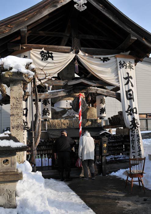 わらじを奉納している大日如来。