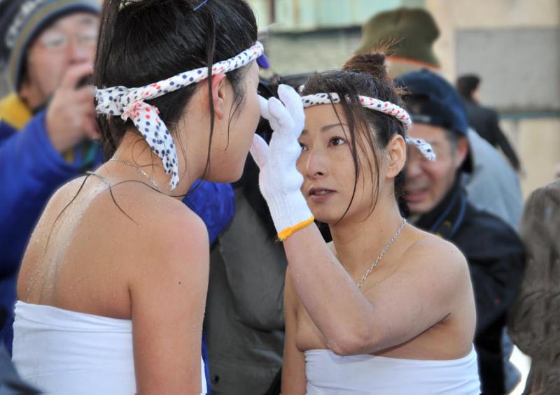 水を掛けられ化粧直しでしょうか?