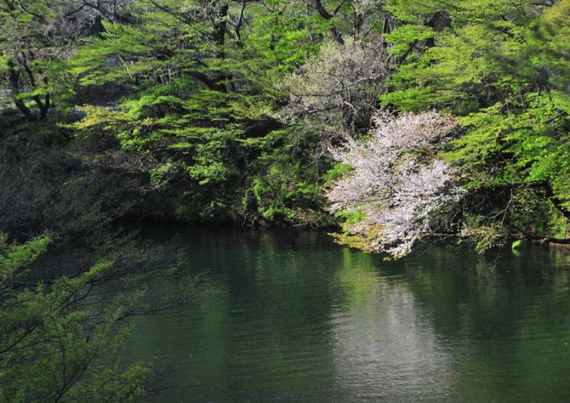 桜が湖面に映ってました。