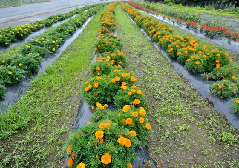 米沢西北部の塩井町の道路沿いに植栽された花です。