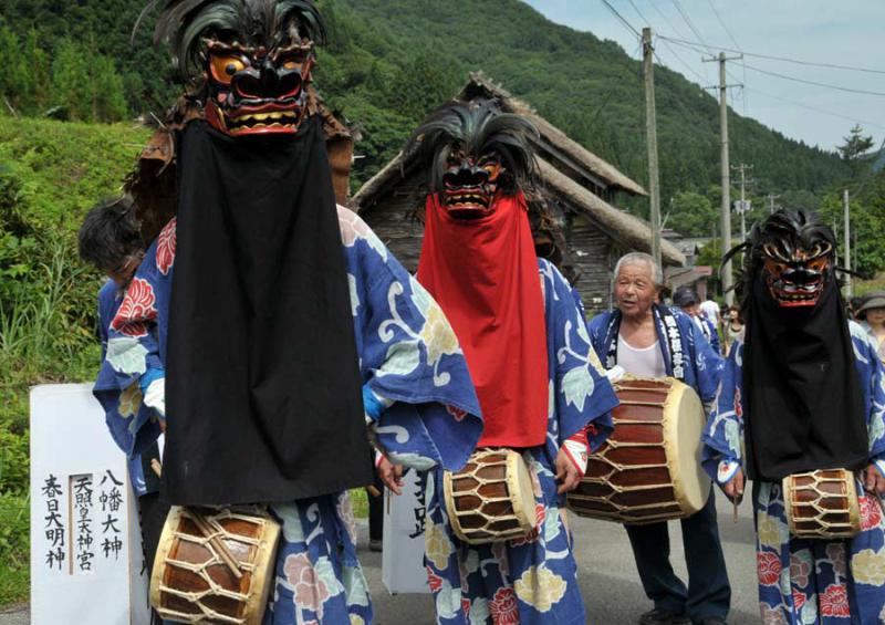 集落を回る獅子の皆さんです。