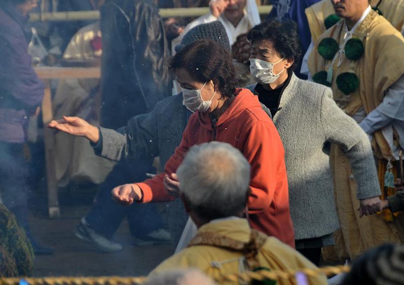 新型インフルエンザの流行の影響でしょうか、マスク姿の参詣者が目立ちました。