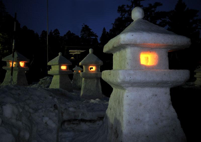 今夜、上杉雪灯ろう祭りのプレ点灯が行われ少し写真を撮ってみました。
