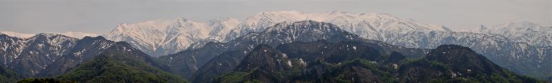 写真は樽口峠からの飯豊連峰のパノラマです。