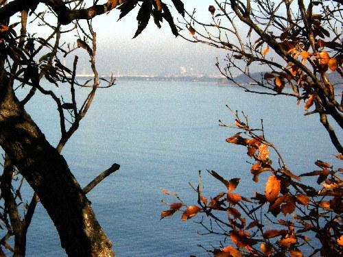 山頂から見た富津市街と海岸です。