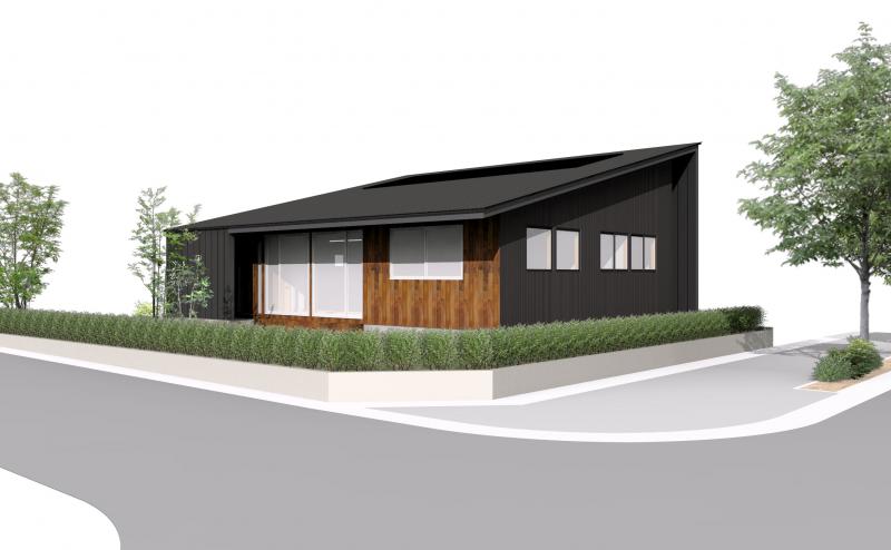 大胆なフォルムの立体感と 木のやわらかさが共演する平屋建て