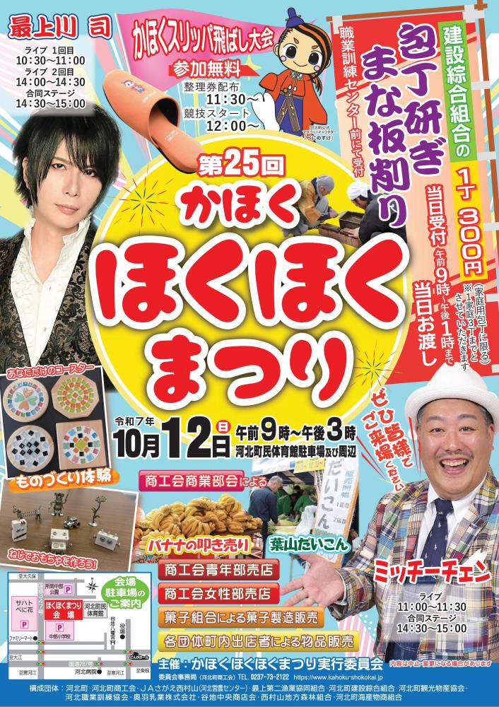 【必見】第25回かほくほくほくまつり完全ガイド!最上川司&ミッチーチェンLIVE、スリッパ飛ばしなど体験満載!
