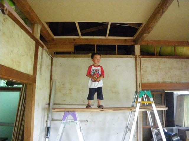 日中の屋根裏はサウナ以上の蒸し暑さ。。。頭クラクラ水ガブガブ。