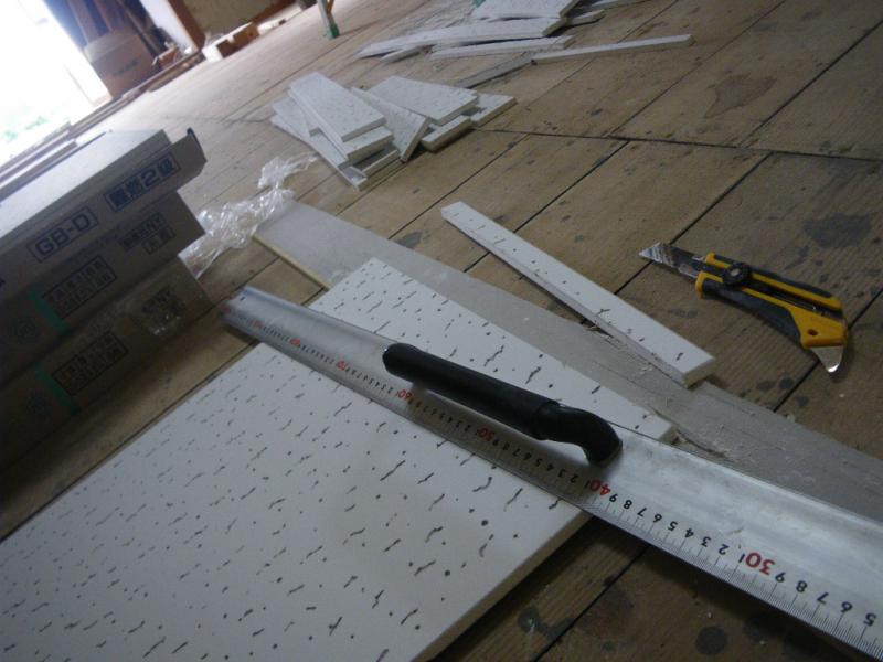 石膏ボード一枚だけだったので、その上からジプトーン天井材を張りました。