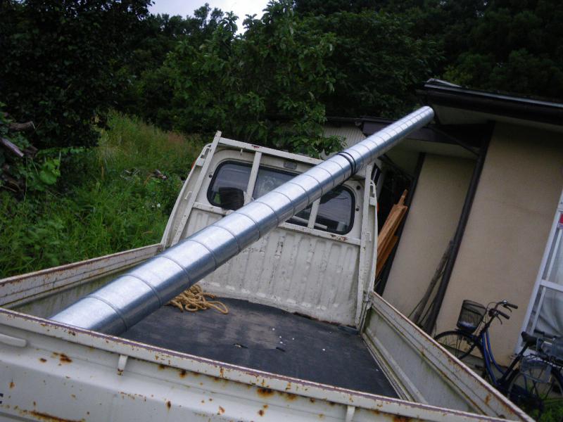 煙突は150の大物ですが、亜鉛のスパイラルダクトで代用。