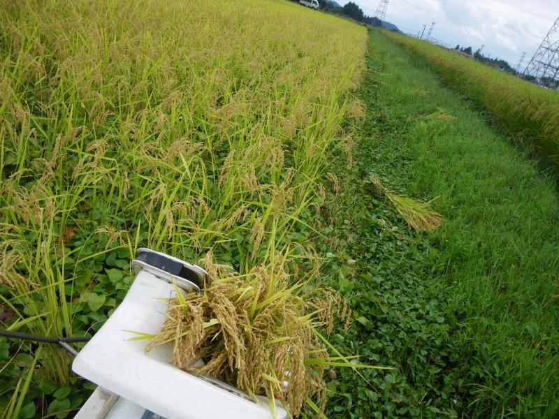 仕方がないので刈り取り部を持ち上げながらの稲刈りで