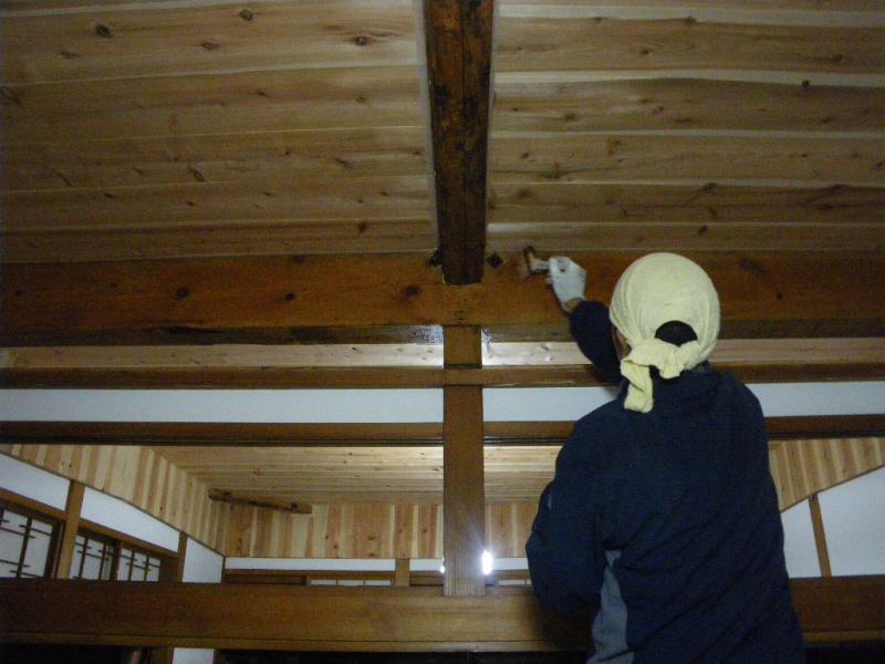 あと居間の梁に柿渋を2回目塗っておしまい。