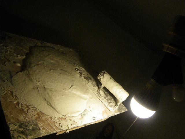 アキラさん直伝の新聞養生。漆喰を塗るための下準備です。