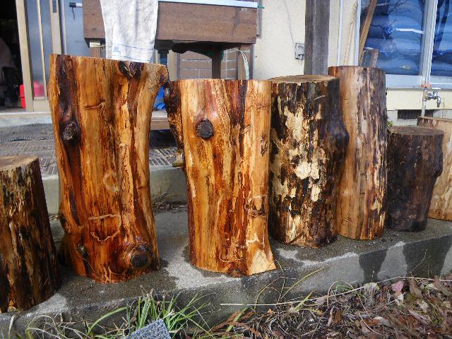 玉切りしてたらふと思って、丸太キープ。鉈で皮を剥ぐ。