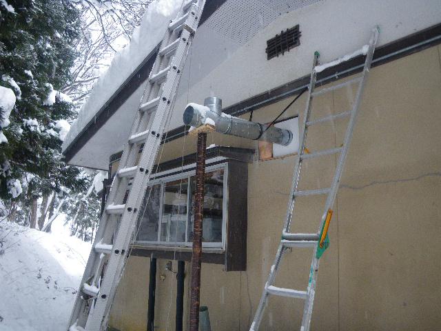 後は壁面のメガネ石と煙突の隙間にコーキング。