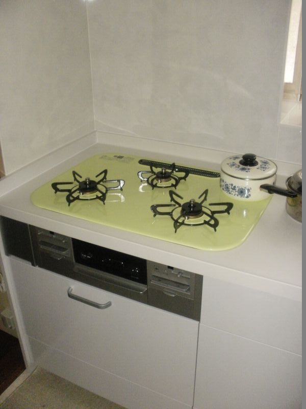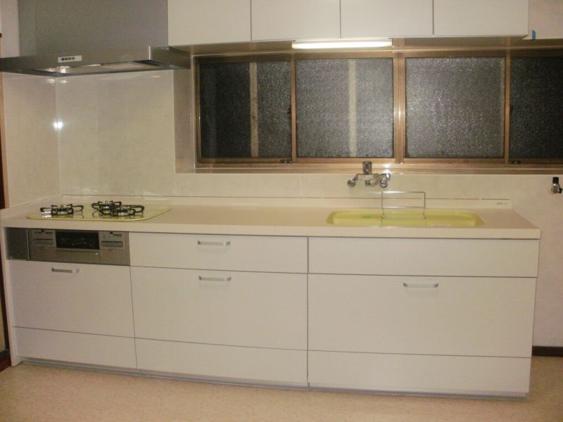 最新式のシステムキッチンに交換、奥様でも手が届きやすいよう、