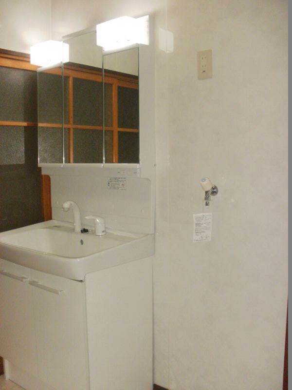 洗面所は洗面化粧台の交換と、床の張替、壁・天井へのパネル貼りを行いました。