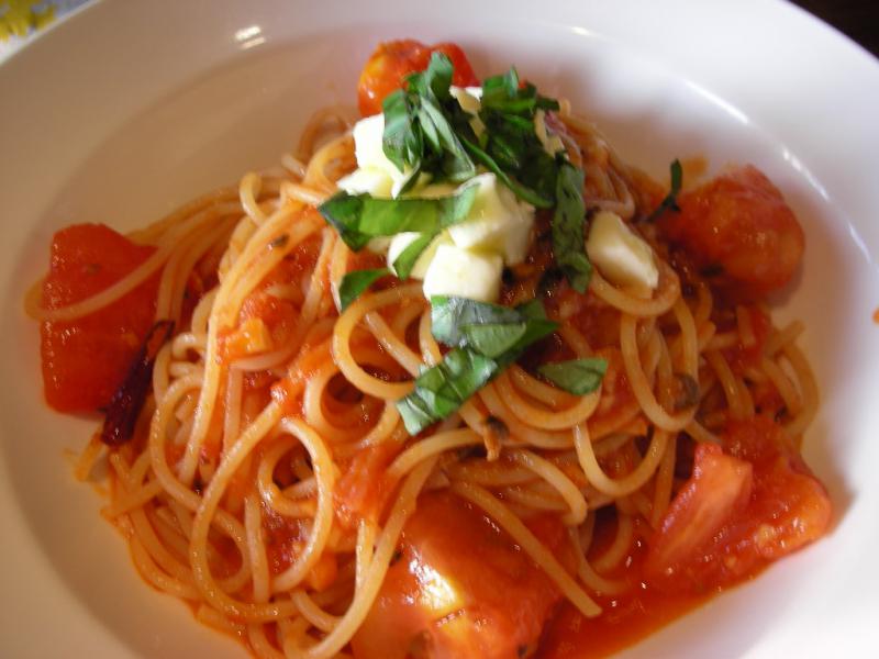 トマトとモッツァレラチーズのパスタ。