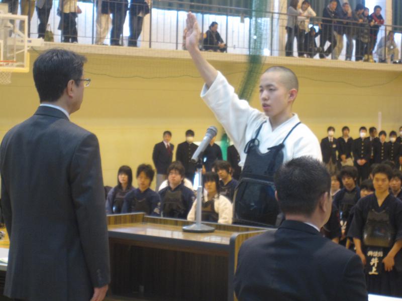 金子選手(3年)の凛々しい選手宣誓で大会の幕開けです。