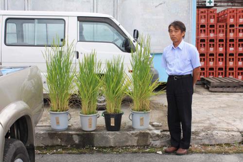 前回更新予定(第6回、8月1日分)は、タイミングが付かずアップしないまま10日が過ぎてしまいました。 楽しみにして頂いていた方、大変申し訳ありません。 今回更新では、8月1日に撮影した写真と合同でアップさせていただきます。 梅雨明け以降、山形県では20日以上の真夏日が続いています。 台風4号が去り、雨も降り稲の生育条件としては整っているように感じます。 さて、バケツ栽培の成長記も6回目となり、すっかり「稲」らしくなってきました。 それではまず、前回更新(7月20日ころ)の様子をふり返ってみます。 ![]() 前回は、その前と比較して草丈などに変化はありませんでしたが、稲の中では幼穂(稲穂の子ども)が生長していました。 続いて、8月初めに撮影した模様をご覧ください。 ![]() 前回は中で生長していた幼穂が表に出てきて、稲らしさが増したように感じます。 そして、これが今回撮影した稲です。 ![]() 今回は、穂が出たこともあり大きく草丈が伸びました。 その大きさを実感して頂くために、今後は人と一緒に撮った写真で紹介していきます。 大きさは、上の2枚に比べて穂が伸びて表から見えるくらいになり、どこから見ても「稲」といった感じに生長しました。 〜〜〜〜〜〜〜〜〜〜〜〜〜〜〜〜〜〜〜〜〜〜〜〜〜〜〜〜〜〜 米作りのプロよりコメント 梅雨が明けてからというもの、連日猛暑が続いています。 暑い時こそ、体調管理に気をつけたいものです。 人や動物だけでなく、稲をはじめ植物にも暑さ対策が必要です。 あまりに日差しが強い時には、少し日影に避難させるのも手です。 バケツの稲は、人と比べて「胸から肩くらいの高さ」まで生長しました。 前回と比較すると「出穂」と共に草丈がぐんと伸び、すっかり稲らしくなりました。 ここからが大事なところです。水の管理をこまめに行うようにしてください。 ☆ バケツ栽培への ワンポイントアドバイス ☆ ―スズメにご注意! 他― 稲穂が出てきたということは、スズメなど鳥や獣に狙われることがあるかもしれません。 こちらが、実際にスズメに荒された稲穂の写真です。 ![]() スズメ(鳥)についばまれた部分が、白くなっているのが確認できます。 せっかく育った稲も、動物に荒らされてはたまりません。きちんと実るまで守ってあげて下さい。 志賀 〜〜〜〜〜〜〜〜〜〜〜〜〜〜〜〜〜〜〜〜〜〜〜〜〜〜〜〜〜〜 引き続き、米鶴ではバケツ栽培されている方からの写真投稿をお待ちしております。 提供頂ける方は、 ・デジカメや携帯電話などで撮ったバケツ栽培の写真 に一言コメントを添えて、info@yonetsuru.comまでメールをお送りくださいませ。 皆様のご協力、お待ちしています。 他にも疑問・質問はもちろん、ホームページを見ての感想などでも結構ですので、問い合わせフォームにお寄せください! 次の更新は、お盆明けの8月21日を予定しています。次回はどのような生長を見せてくれるでしょうか?楽しみです。 それでは、次回更新までごきげんよう! ↓まほろばの酒蔵 米鶴酒造のホームページははこちら↓ 米鶴酒造株式会社 公式ホームページ【別ウィンドウが開きます】 |