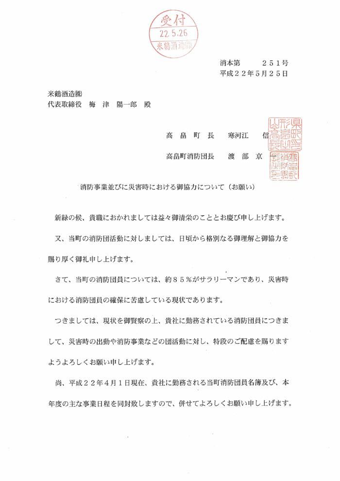 ▼米鶴酒造 消防事業・災害時における協力