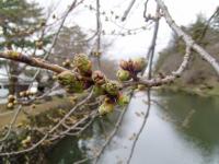 桜の蕾はだいぶふっくらしてきて先のほうも少し開き始めていました。